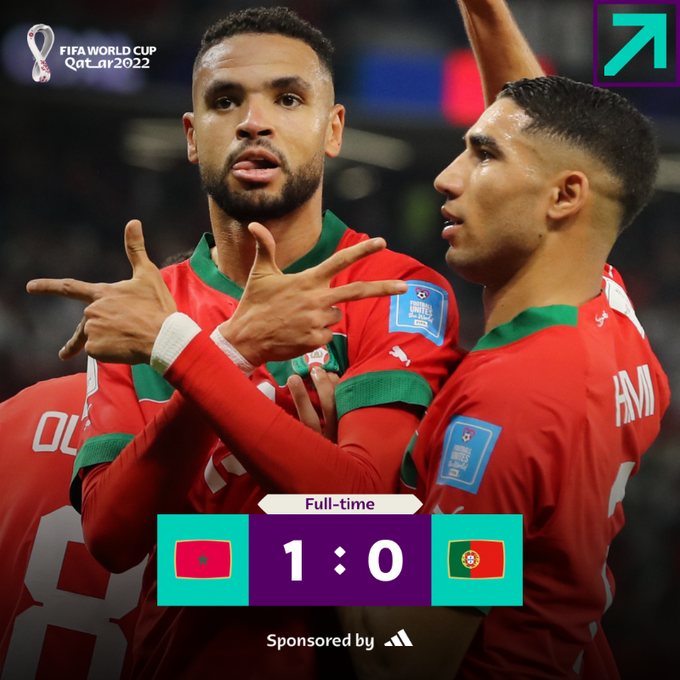 모로코는 선제골을 잘 지키며 1대0으로 승리를 했다. 아프리카팀 최초로 월드컵 4강에 진출하였다.