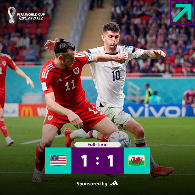 웨일스는 카타르, 이란과 비슷하게 수비적으로 나왔다.미국은 높은 점유율로 경기를 할 수 있었지만 티모시 웨아, 조시 사겐트, 크리스티안 풀리시치의 크로스는 골을 만들기에는 역부족이였다.