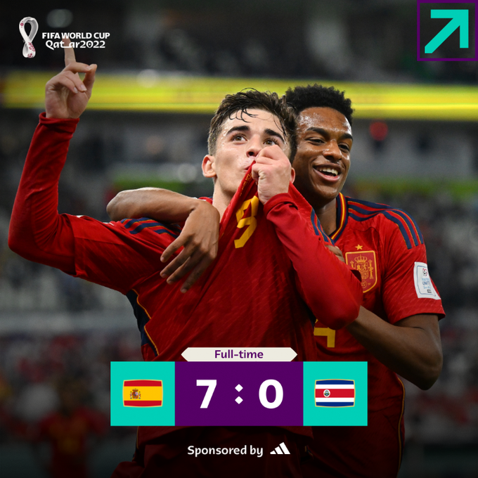 스페인은 경기 내내 주도하며 전반에 3골, 후반에 4골을 몰아쳤다.