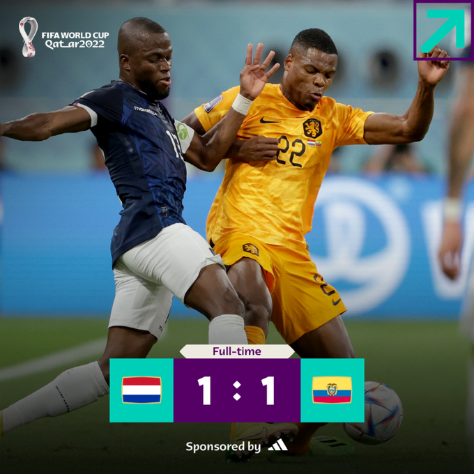 경기 초반 골을 성공시켜 리드를 가져간 네덜란드에 에콰도르는 동점골을 노리며 반격에 나섰다. 브라이튼의 윙백 페르비스 에스투피난이 마침내 전반 막판 골로 동점을 만들었지만, 결국 오프사이드로 인정받지 못했다.