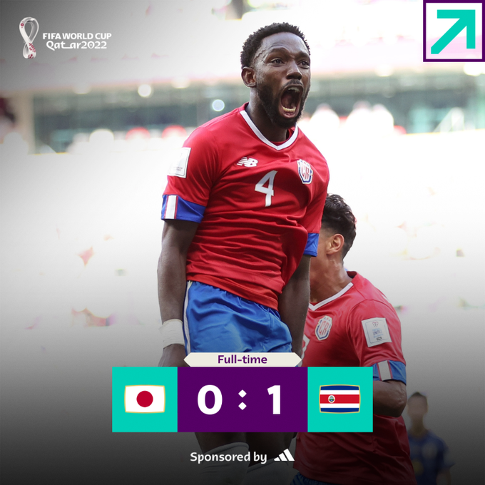 후반에도 일본이 계속 경기를 주도하였고 코스타리카의 골문을 노렸지만 마무리가 좋지 않아 골로 연결되지 않았다. 후반 36분 계속 물러서 있던 코스타리카는 케이셔 풀러가 일본의 실수를 틈다 왼발 슛으로 골을 만들었다.