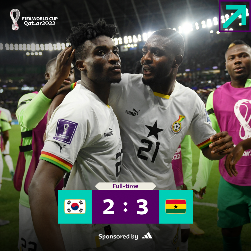 그러나 후반 23분 가나의 쿠두스에게 헤딩 결승 골을 허용하며 역전당했다. 이후 한국은 계속해서 공격하며 여러 차례 기회가 있었지만 확실하게 마무리를 하지 못하며 골을 만들지 못하였다.